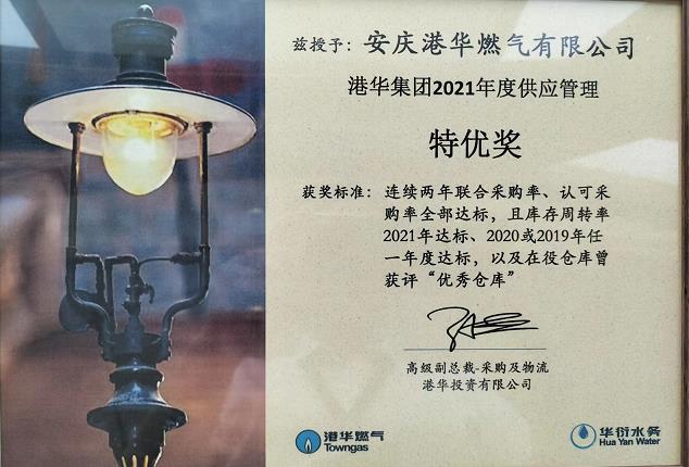 安慶港華喜獲港華集團2021年度“供應(yīng)管理特優(yōu)獎”