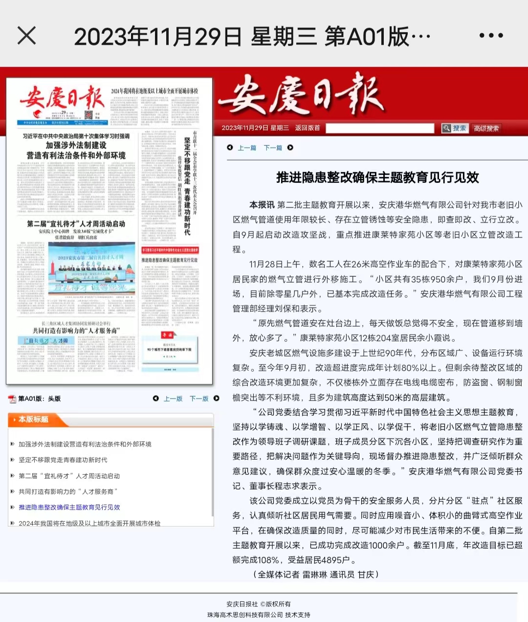 推進(jìn)隱患整改確保主題教育見(jiàn)行見(jiàn)效(轉(zhuǎn)載于安慶日?qǐng)?bào))