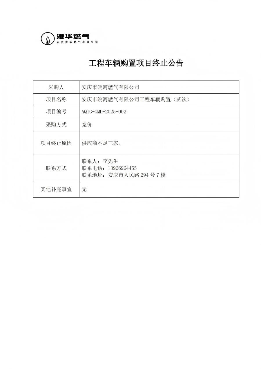 工程車(chē)輛購(gòu)置項(xiàng)目終止公告