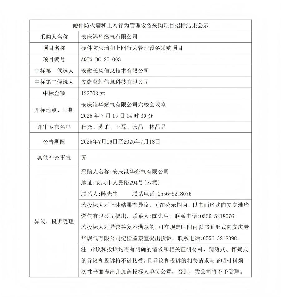 硬件防火墻和上網(wǎng)行為管理設(shè)備采購(gòu)項(xiàng)目招標(biāo)結(jié)果公示