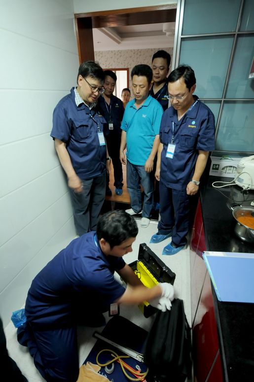 在安慶巡查的第三站——綠地迎江世紀(jì)城小區(qū),主要展示的是小區(qū)戶(hù)內(nèi)集中安檢。進(jìn)入小區(qū),映入眼簾的是一排排安檢宣傳、咨詢(xún)、安全燃?xì)饩哒故緟^(qū),宣傳展板向居民展示燃?xì)獍踩褂弥R(shí)、燃?xì)馐鹿示炯鞍踩細(xì)饩叩氖褂玫瘸WR(shí),工作人員細(xì)致耐心的解答居民的咨詢(xún),并發(fā)放《燃?xì)饪蛻?hù)安全用氣手冊(cè)》。陳總裁等集團(tuán)領(lǐng)導(dǎo)跟隨安檢員來(lái)到客戶(hù)家中,觀看戶(hù)內(nèi)安檢的每個(gè)環(huán)節(jié),當(dāng)安檢人員規(guī)范地完成整個(gè)安檢流程后,陳總裁給予了“很好,不亞于香港水平”的高度評(píng)價(jià)。