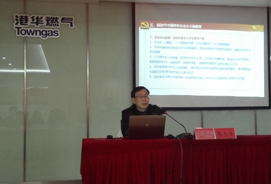 11月29日下午,市委講師團學習宣傳貫徹黨的十九大精神宣講報告會在安慶港華會議室舉行,市委講師團副團長陳大士作宣講報告。安慶港華黨委班子成員、公司黨員共60余人聆聽了宣講。